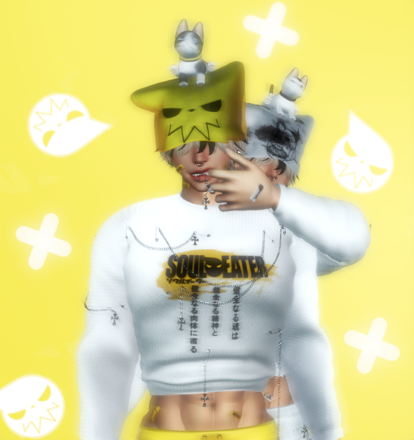 ⤷・ⓘ All together with everything 134k(The sweater has rigged chains) | Kiggy 12k | Beanie 4k | Plugs 6k | Nose ring 1k | Kat teef 520p | Bandaids 2k | Mouth Chains 10k | Chained Sweater 77k (w/out 7k) | Shorts 14k | Sockies 2k |